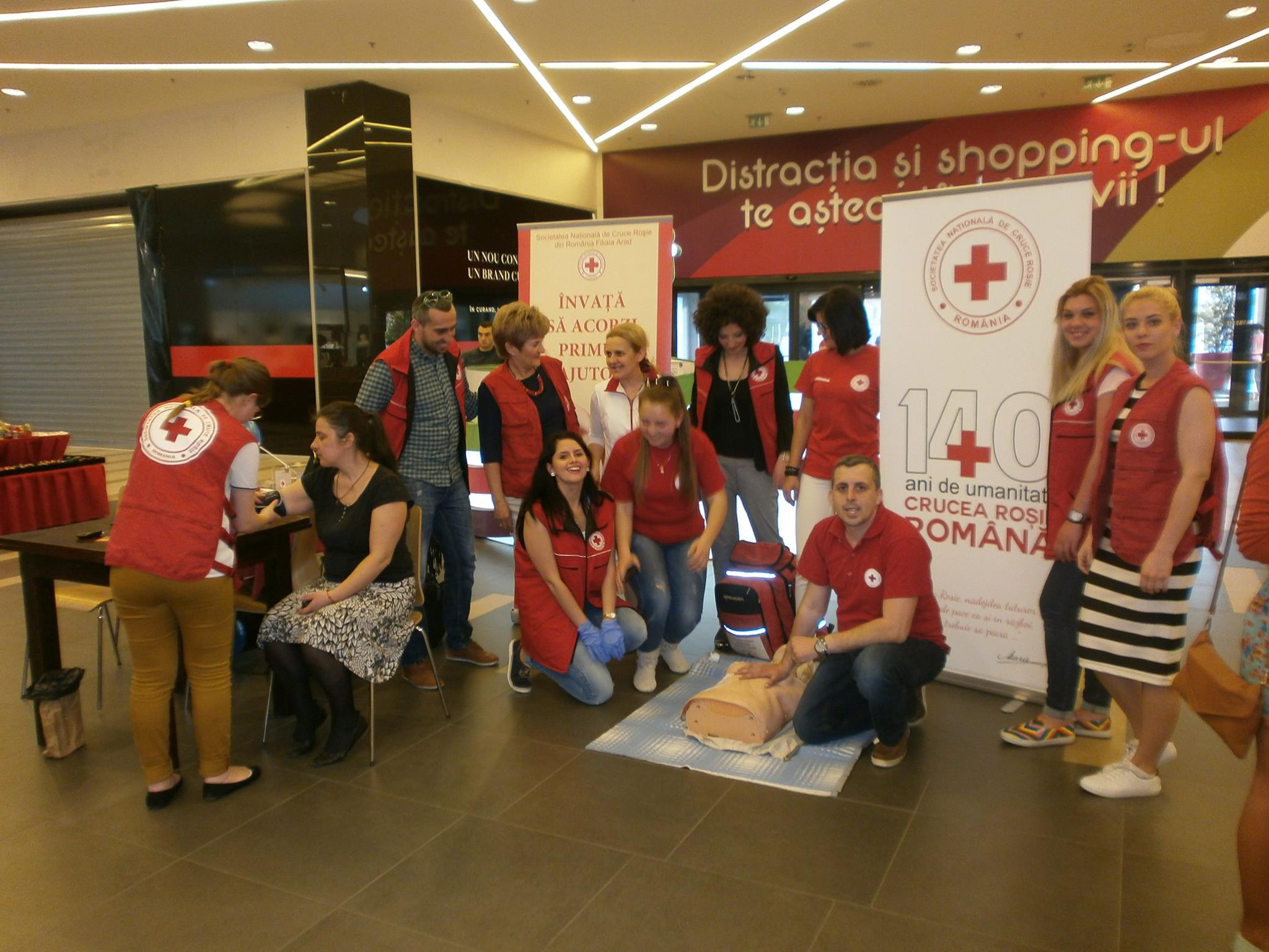 Ziua Mondiala a Sanatatii 7.04.2016. Filiala judeteana de Cruce Rosie Arad a marcat Ziua Mondiala a Sanatatii din acest an prin actiuni de acordare de demonstartii de prim ajutor de baza, masurari de tensiune, glicemie, puls. Actiunile au avut loc in Atrium Mall si Galleria Real , actiuni la care au participat 26 de voluntari, tineri student medicina UV Goldis Arad, elevi, pensionari si voluntari ai filialei. Speram ca actiunea noastra a fost binevenita, au fost multi vizitatori care au solicitat raspunsuri la probleme medicale . Multumim tuturor care ne-au donat alimente alaturi de acesata activitate precum si voluntarilor implicati in activitate. Sperama ca aceste actiuni sa le repetam si in luna mai, Luna Crucii Rosii Romane, in acest an aniversar cand Cucea Rosie Romana implineste 140 de activitate umanitara neintrerupta. Cuvineanu